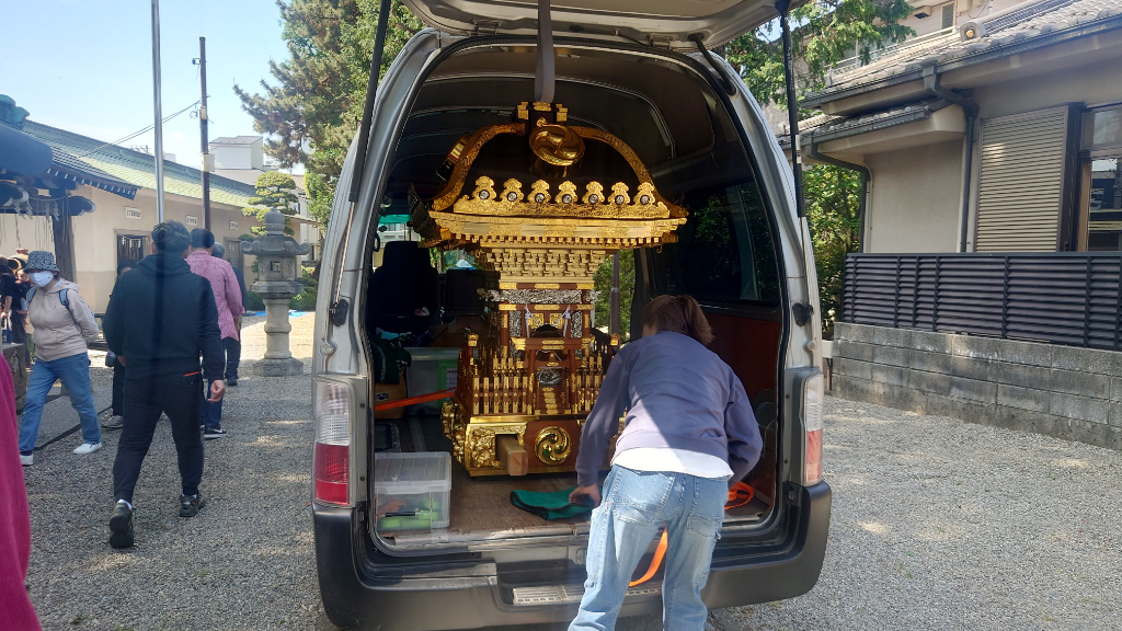 昨年6月に修繕に出した神輿が完成し本日搬入となりました。